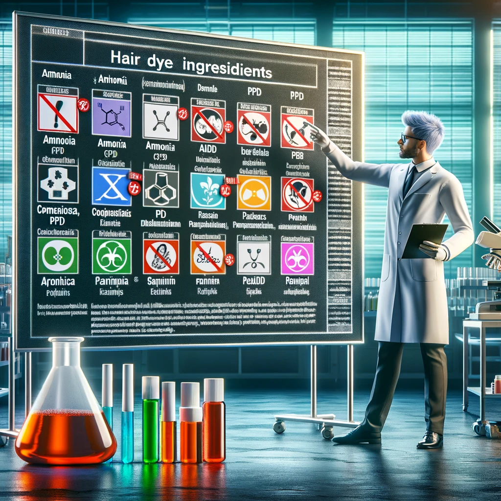 Amonyak, peroksit, parabenler, phthalates, resorsinol ve PPD (para-fenilendiamin) gibi kimyasallar saç boyalarında bulunabilir ve zararlı olabilirler.